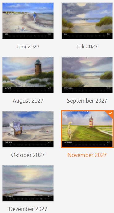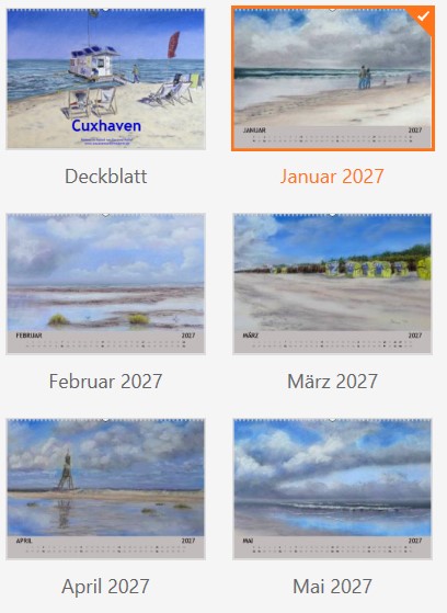Für 2027 biete ich zwei Kalender an „Leuchten“ und „Cuxhaven“: